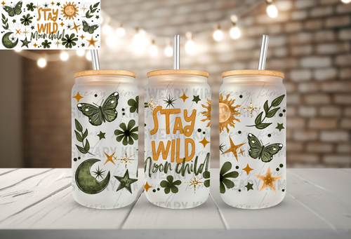 Exclusive Stay Wild Moon Child UV Dtf 16oz glass can wrap