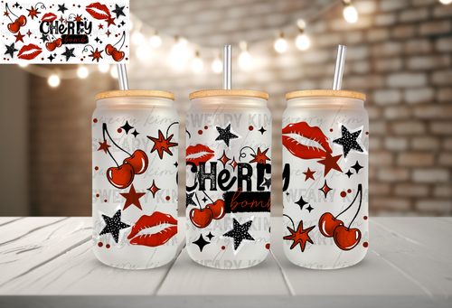 Cherry Bomb UV Dtf 16oz glass can wrap