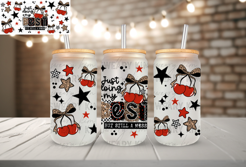 Doing My Best Still A Mess UV Dtf 16oz glass can wrap