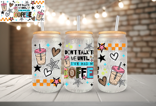 Don't Talk To Me Until Coffee UV Dtf 16oz glass can wrap