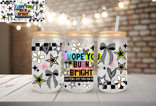 Exclusive Burn Bright UV Dtf 16oz glass can wrap
