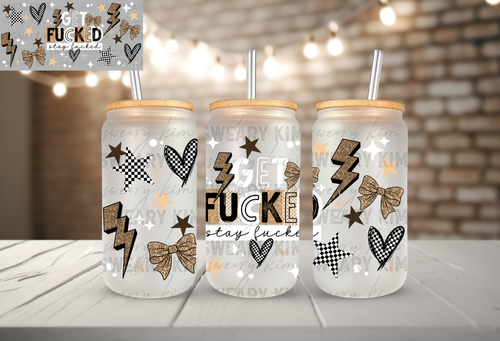 Exclusive Leopard Get Fucked Stay Fucked UV Dtf 16oz glass can wrap