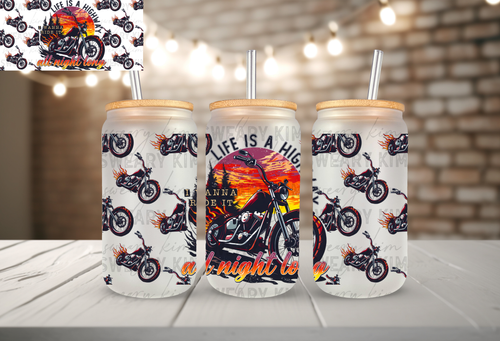 Life Is A Highway UV Dtf 16oz glass can wrap
