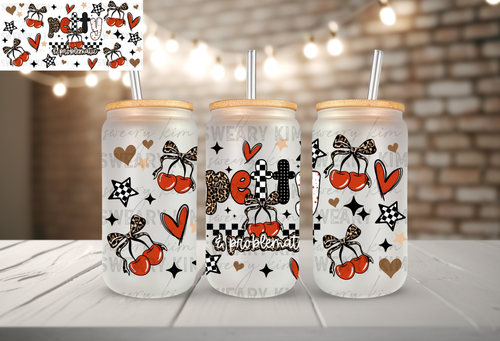 Petty & Problematic Leopard Cherries UV Dtf 16oz glass can wrap
