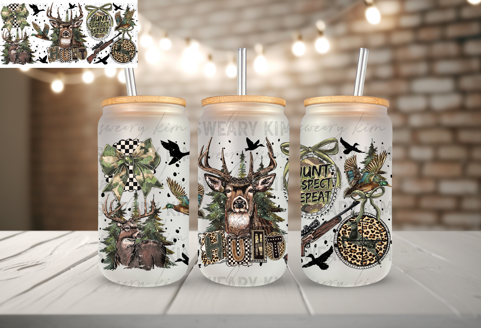 Hunt Respect Repeat UV Dtf 16oz glass can wrap