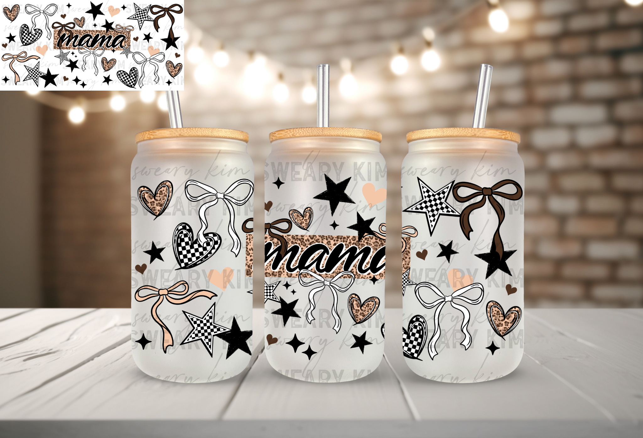 Leopard Mama Bows UV Dtf 16oz glass can wrap