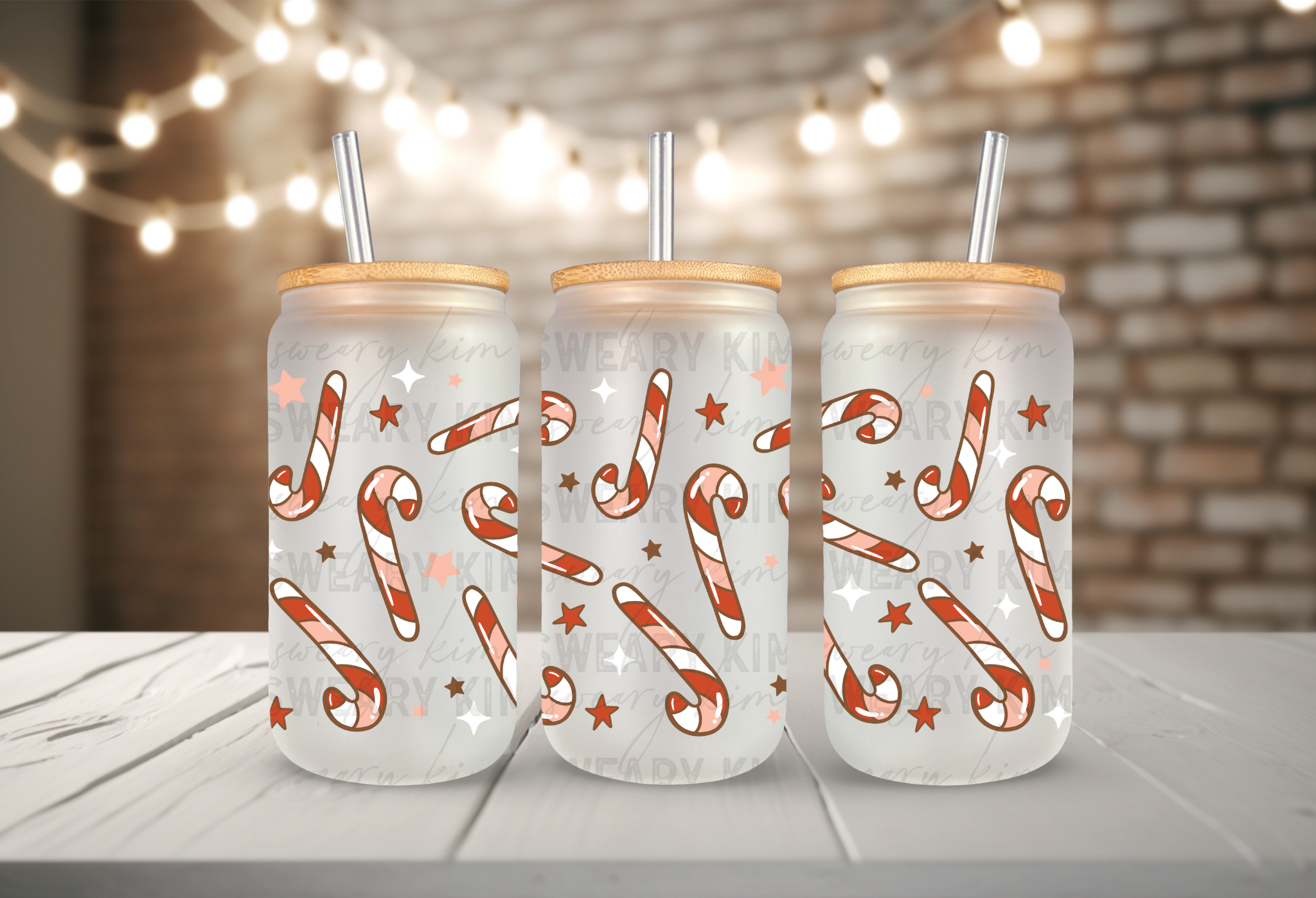Candy Canes & Stars UV Dtf 16oz glass can wrap