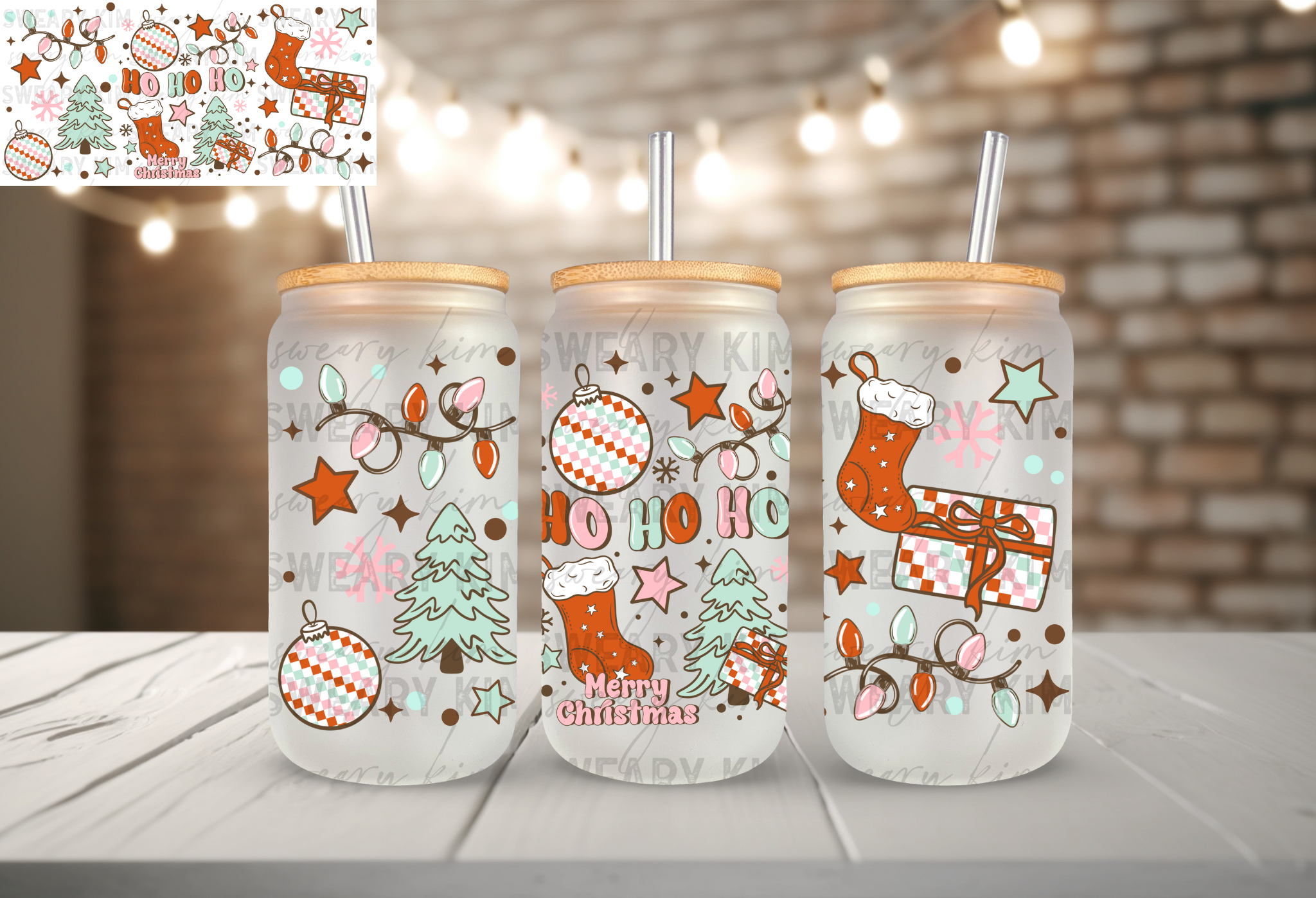 Pastel Ho Ho Ho UV Dtf 16oz glass can wrap
