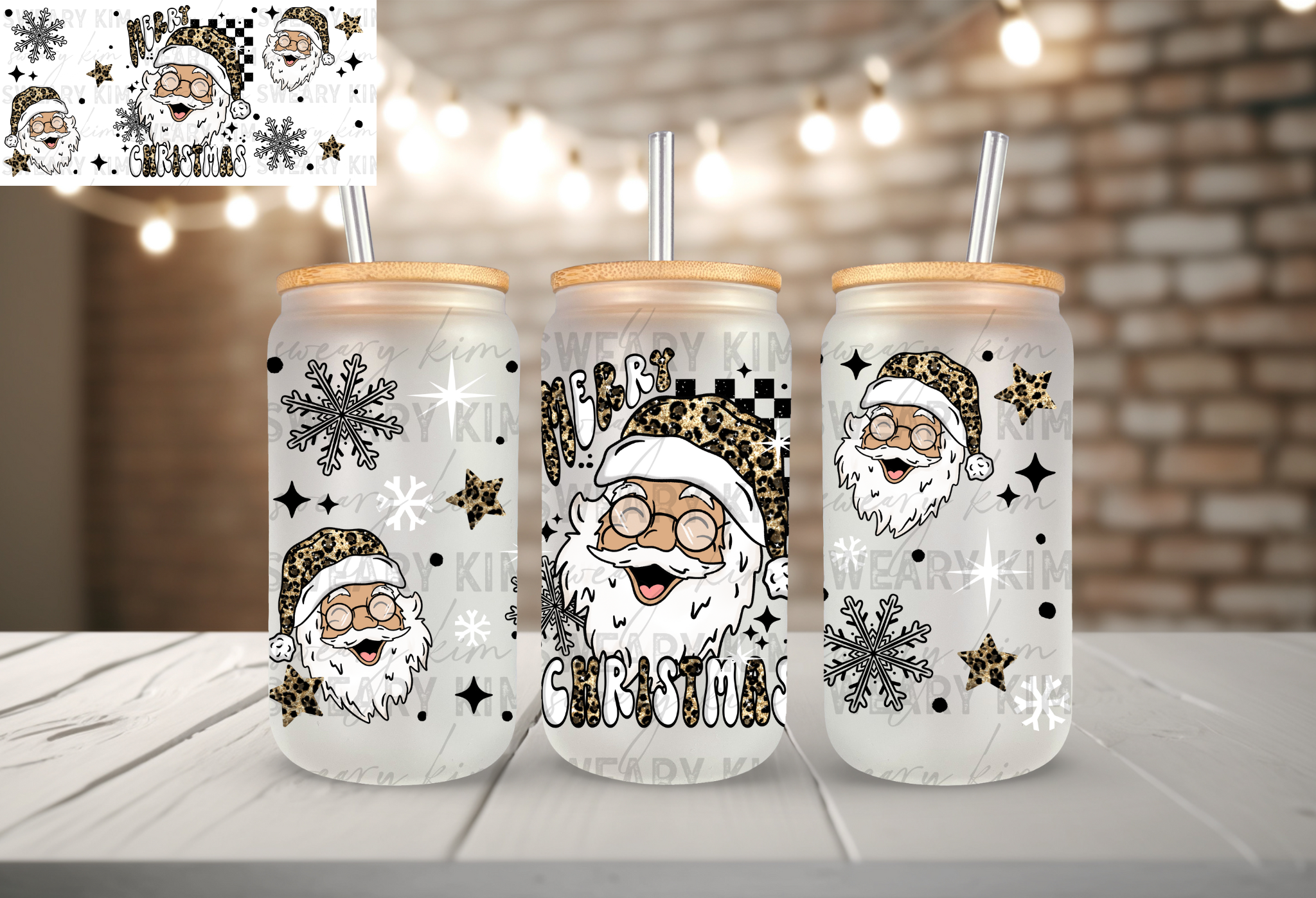 Vanilla Leopard Santa UV Dtf 16oz glass can wrap