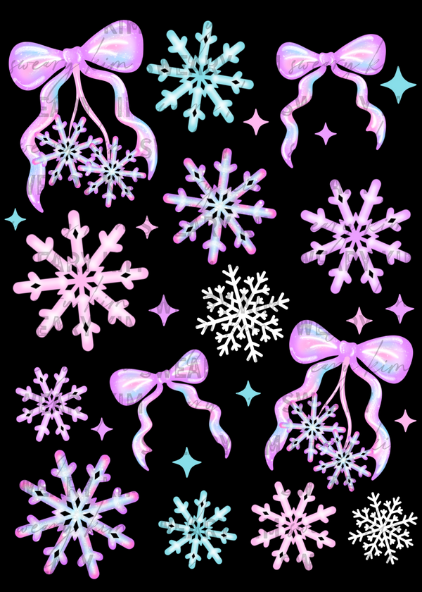 Exclusive B&W Bows & Snowflakes UV Dtf Element Sheet