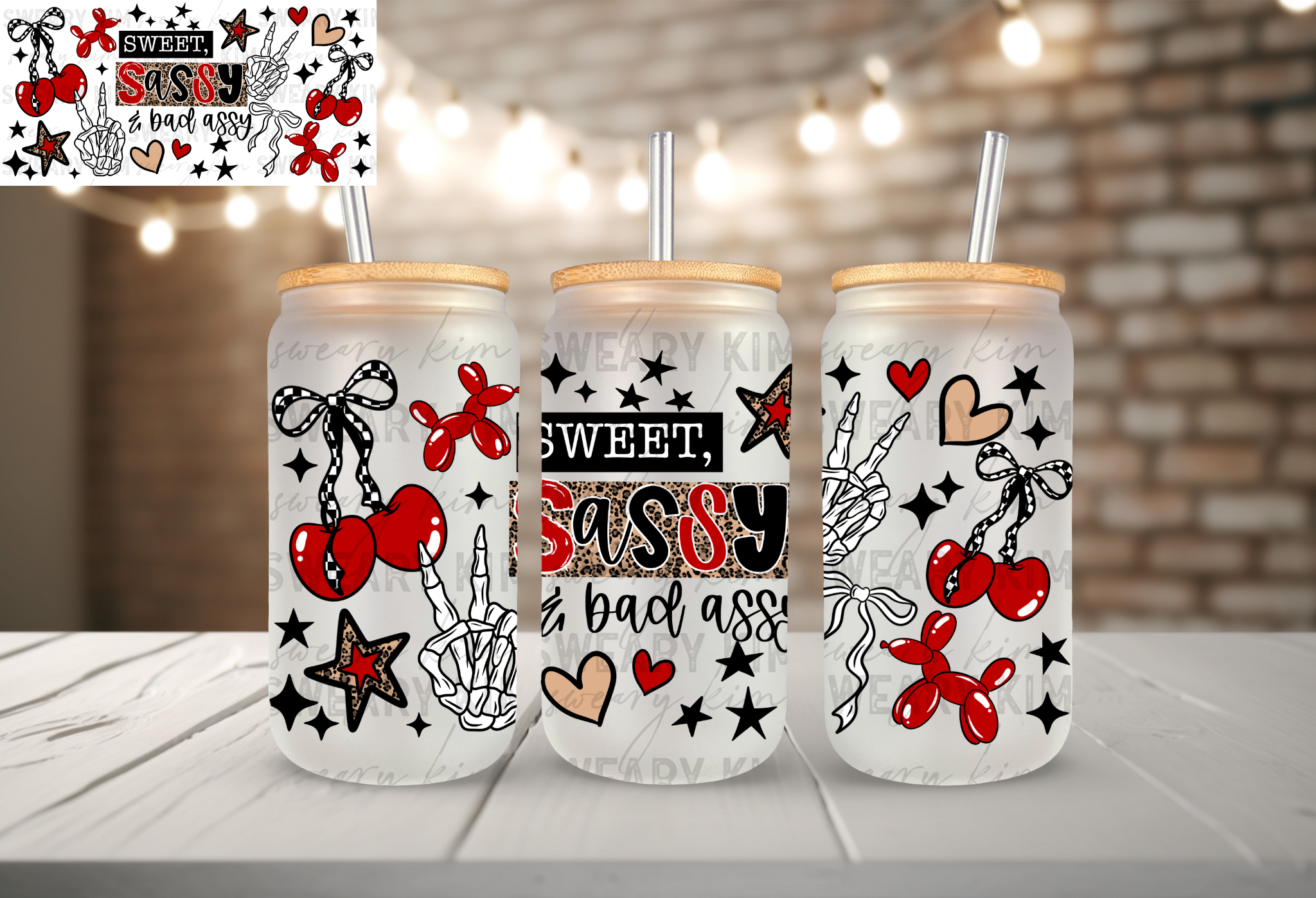 Exclusive Leopard Sassy Bad Assy UV Dtf 16oz glass can wrap