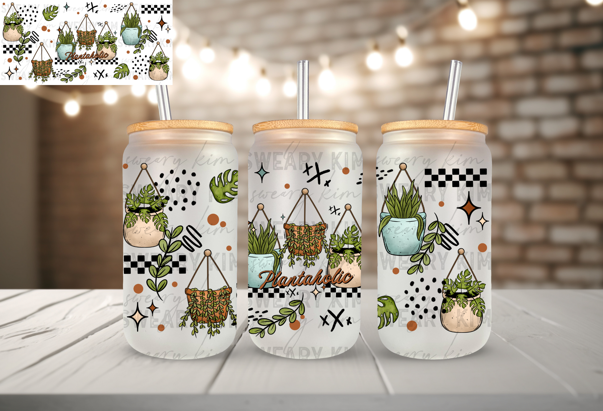 Plantaholic UV Dtf 16oz glass can wrap