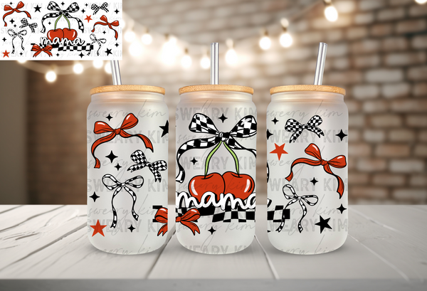 Exclusive Retro Mama Cherries UV Dtf 16oz glass can wrap