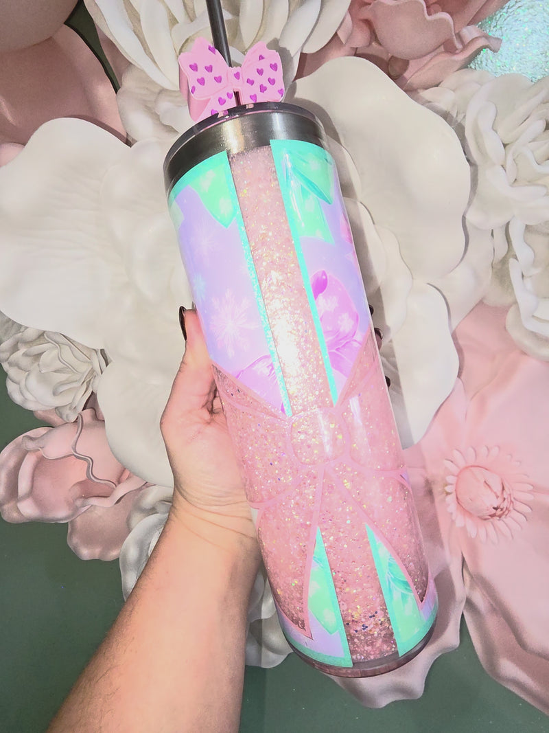 Pink Shimmer Bow Glitter Snow Globe Tumbler