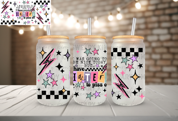 Haters To Piss Off UV Dtf 16oz glass can wrap