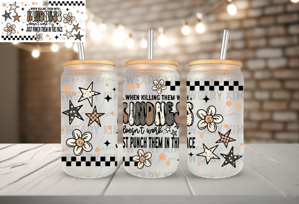 Kindness Doesn't Work, Punch Them UV Dtf 16oz glass can wrap