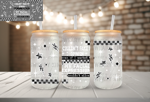 Couldn't Fake My Opinion UV Dtf 16oz glass can wrap