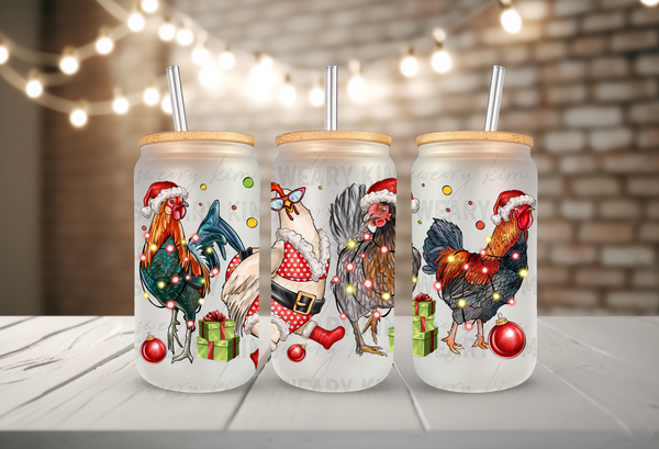 Christmas Chickens UV Dtf 16oz glass can wrap
