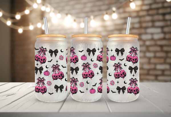 Pumpkin Cherry Bows UV Dtf 16oz glass can wrap