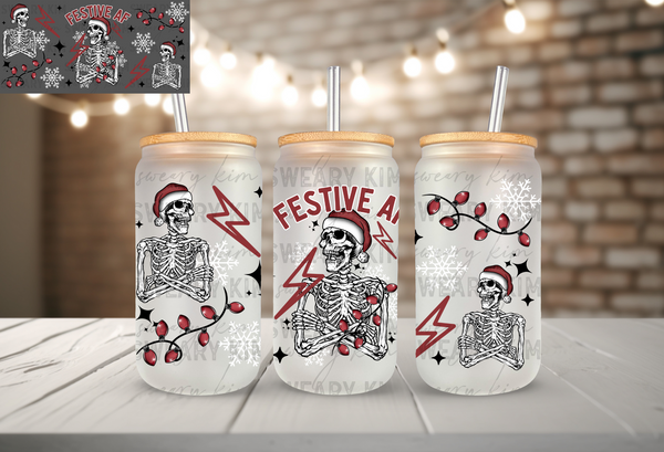 Festive AF Skellie UV Dtf 16oz glass can wrap