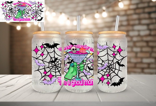 Ghoul Mom UV Dtf 16oz glass can wrap