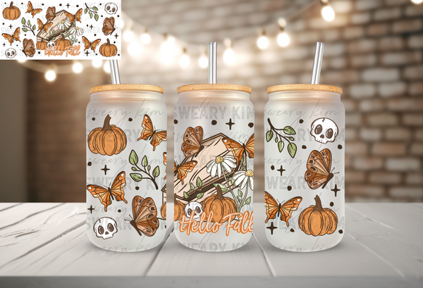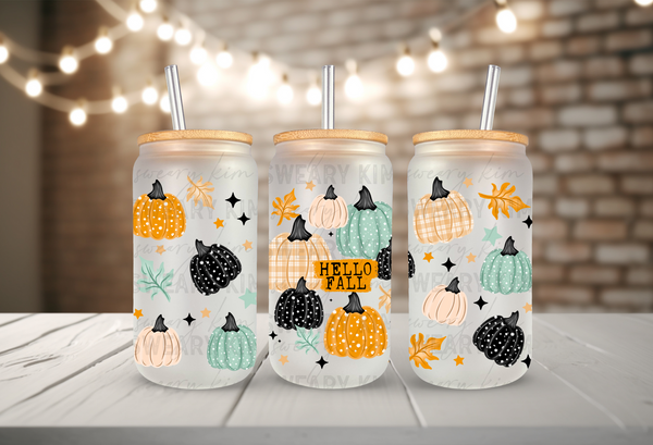 Exclusive Hello Fall Pumpkins UV Dtf 16oz glass can wrap