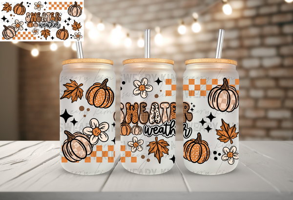 Sweater Weather UV Dtf 16oz glass can wrap