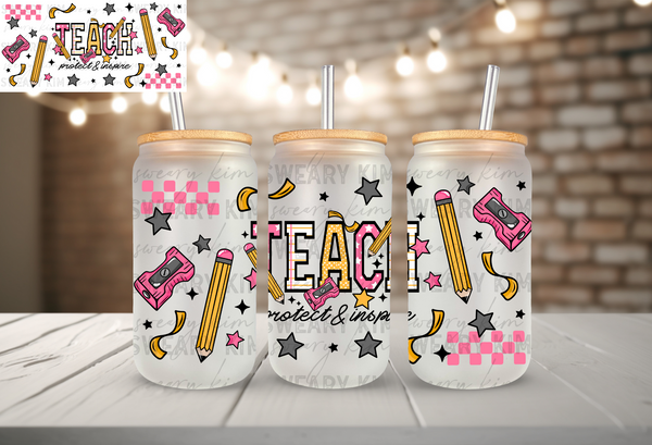 Teach Protect & Inspire UV Dtf 16oz glass can wrap