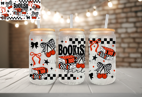 Exclusive Bookish Girly Cherries UV Dtf 16oz glass can wrap