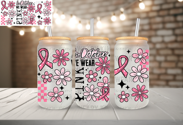 October We Wear Pink UV Dtf 16oz glass can wrap
