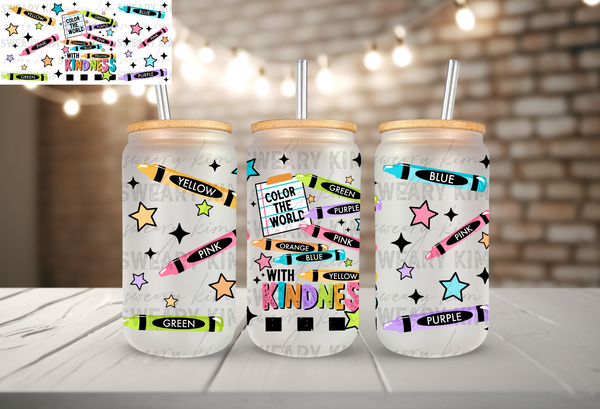 Color The World With Kindness UV Dtf 16oz glass can wrap
