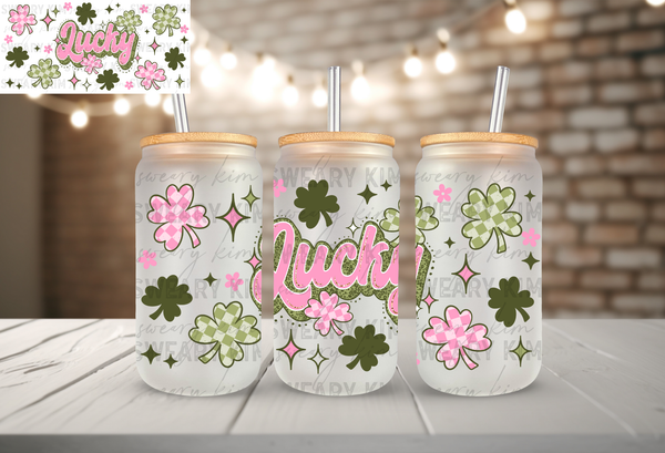 Lucky UV Dtf 16oz glass can wrap