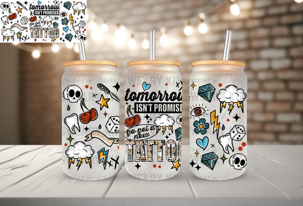Tomorrow Not Promised Get A Tattoo UV Dtf 16oz glass can wrap
