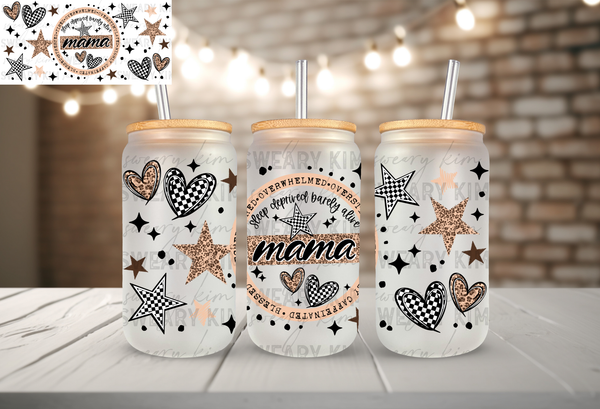 Very Tired Mama (Red) UV Dtf 16oz glass can wrap