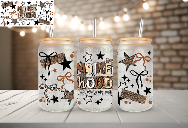 Motherhood Retro Block Font UV Dtf 16oz glass can wrap