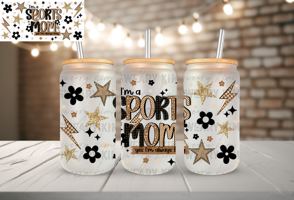 Sports Mom UV Dtf 16oz glass can wrap