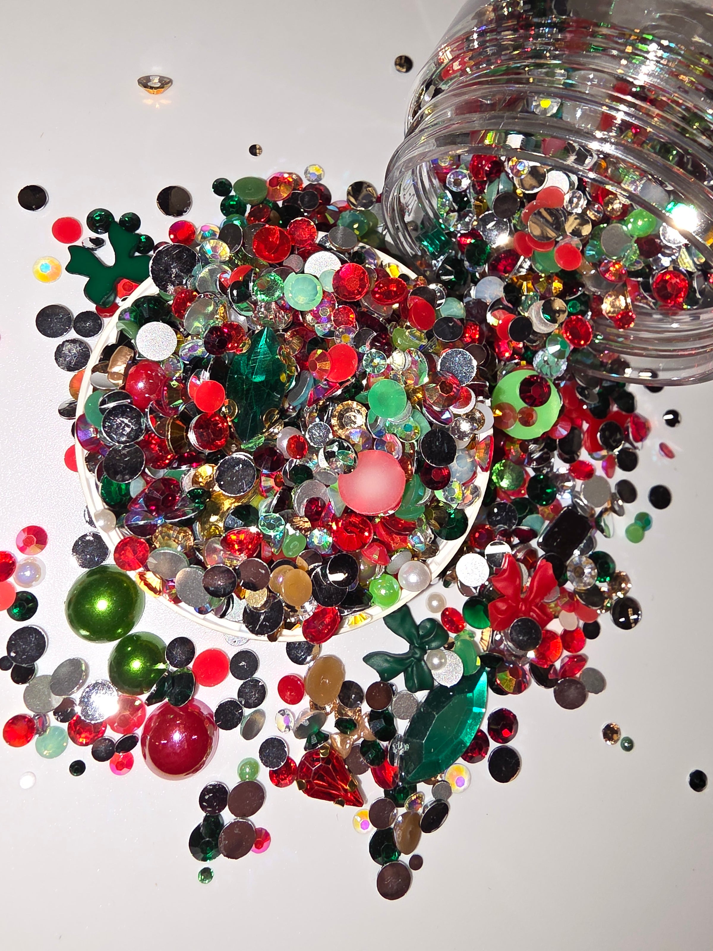 Beautiful custom mix of flat back glass & jelly rhinestones and misc shaped stones and half pearls as well.